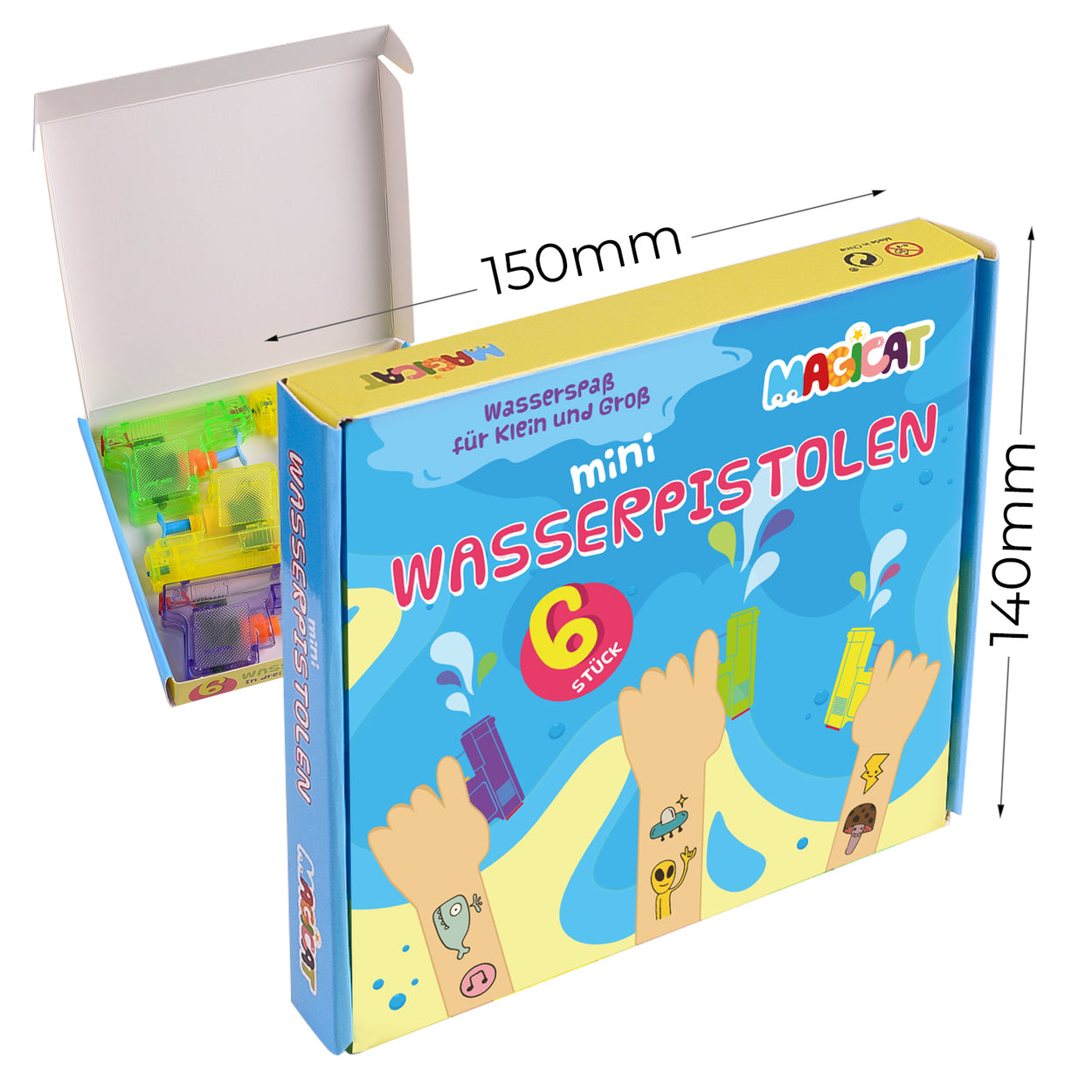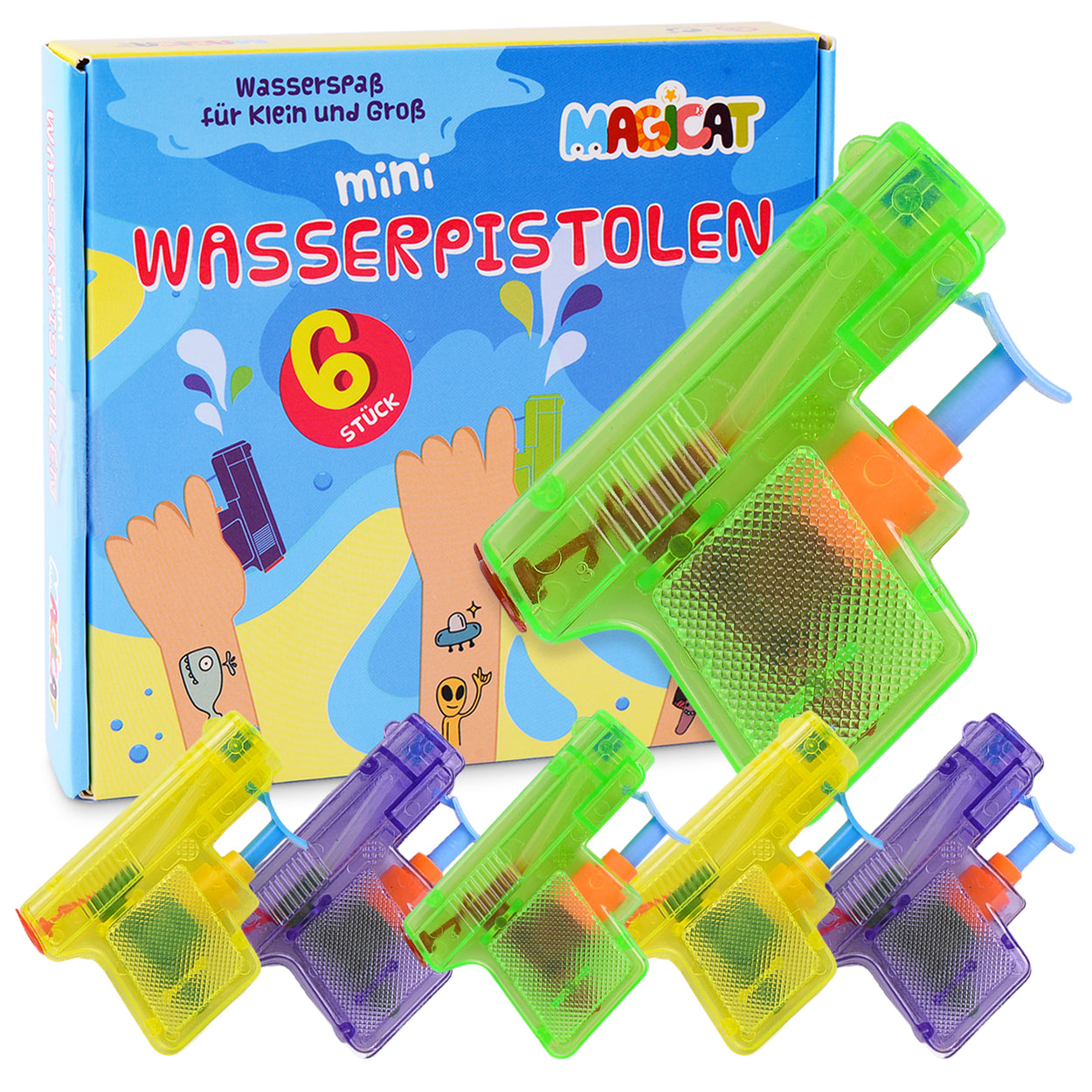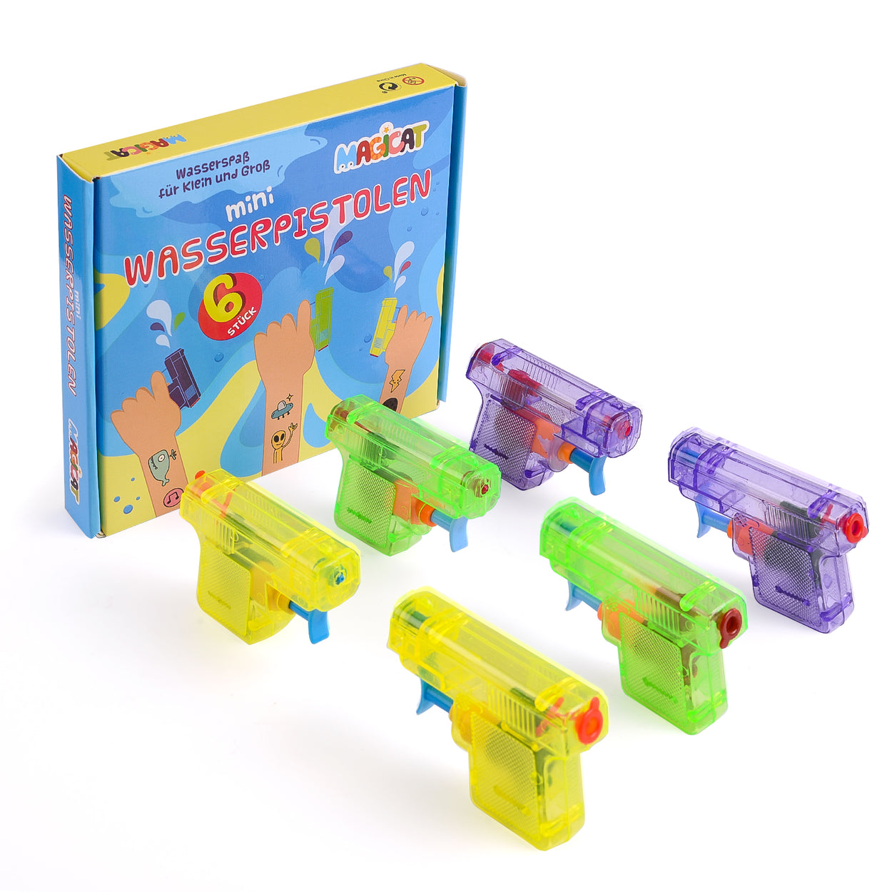 Magicat Premium Wasserpistolen Set, 6 Pistolen für Klein und Groß
