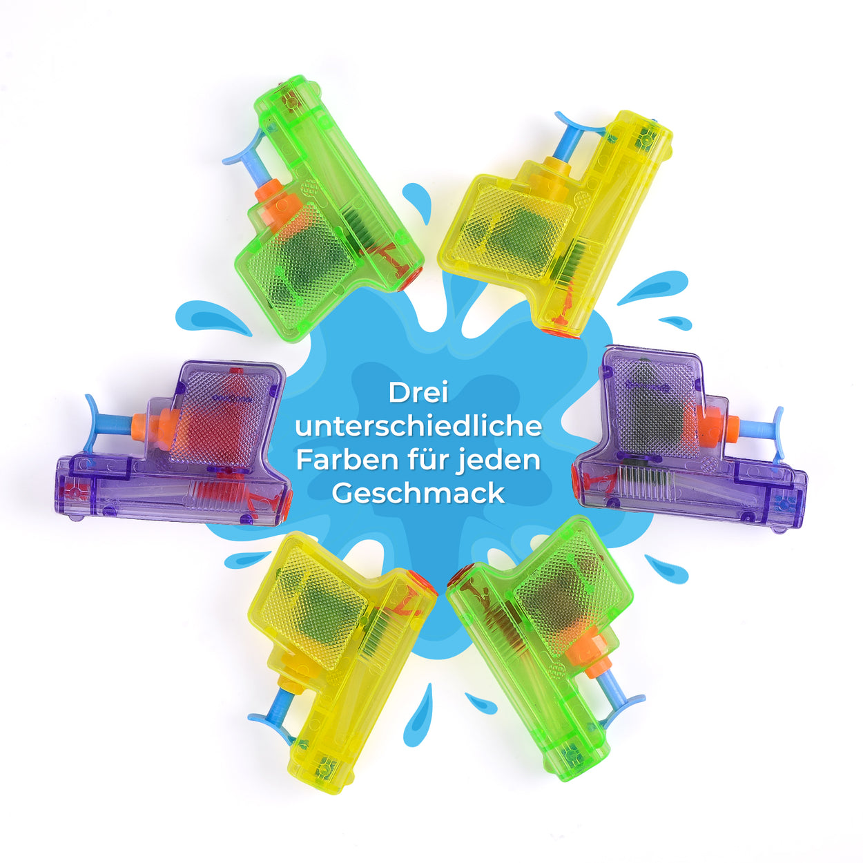 - Auf der Suche nach einem tollen Bade- & Strandspielzeug? Unsere Wasserpistolen sorgen für etwas Abkühlung! Wasserspaß für Groß und Klein, 6 Wasserpistolen in 3 verschiedenen Farben - Grün, Lila und Gelb.